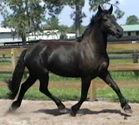 2003 Friesian Sporthorse mare, homozygous black, 16.1 hands. Registered